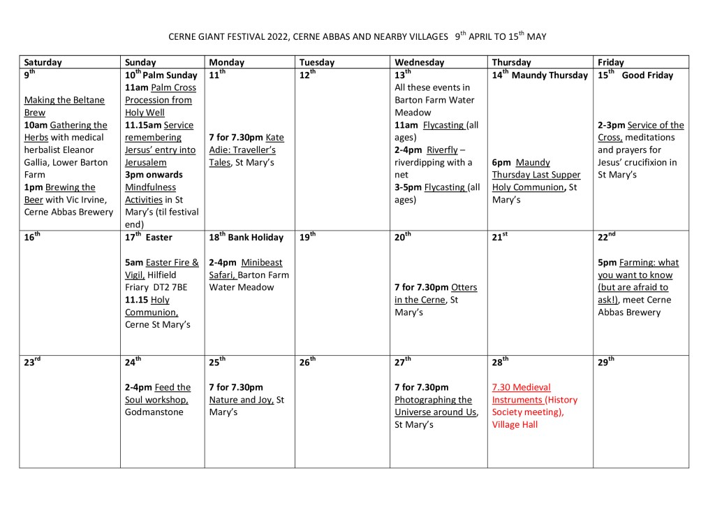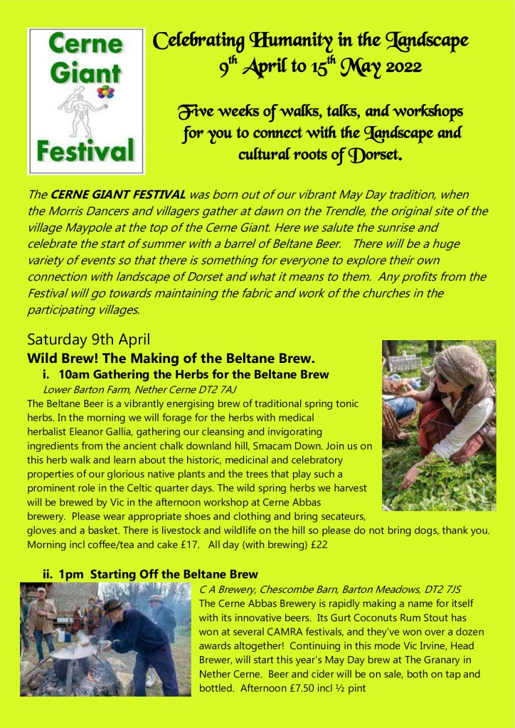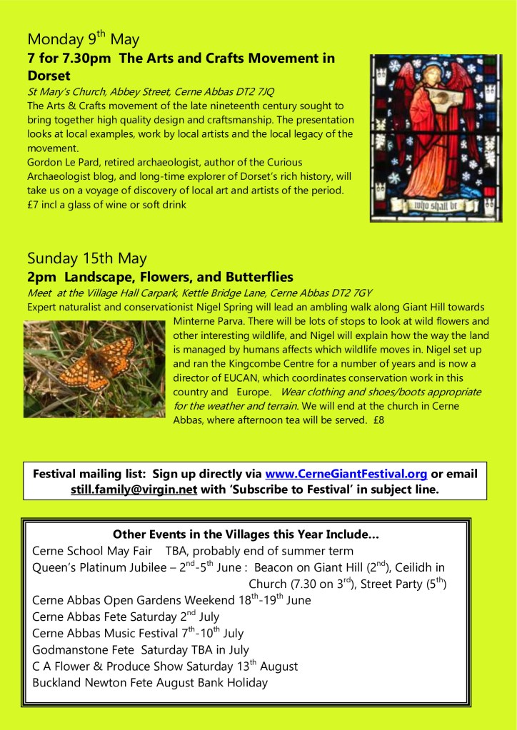 Tickets are on sale via Eventbrite (booking fee applies) or go directly to individual events here. Nearer the dates of the events tickets will be in Cerne Village Stores.