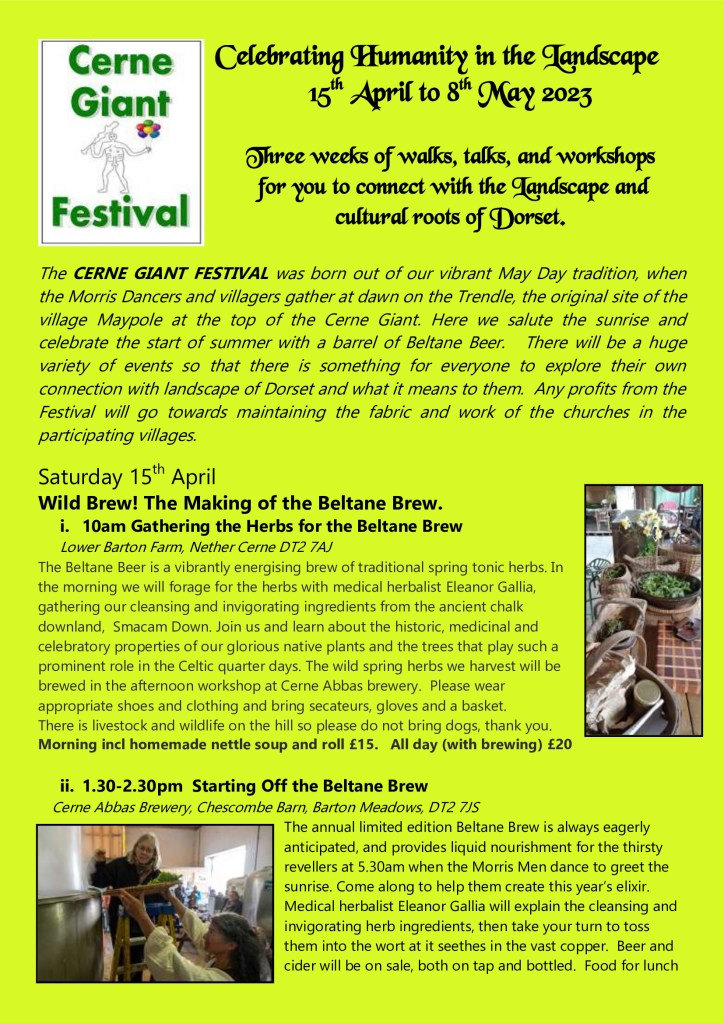 Tickets are on sale via Eventbrite (booking fee applies) or go directly to individual events here. Nearer the dates of the events tickets will be in Cerne Village Stores.